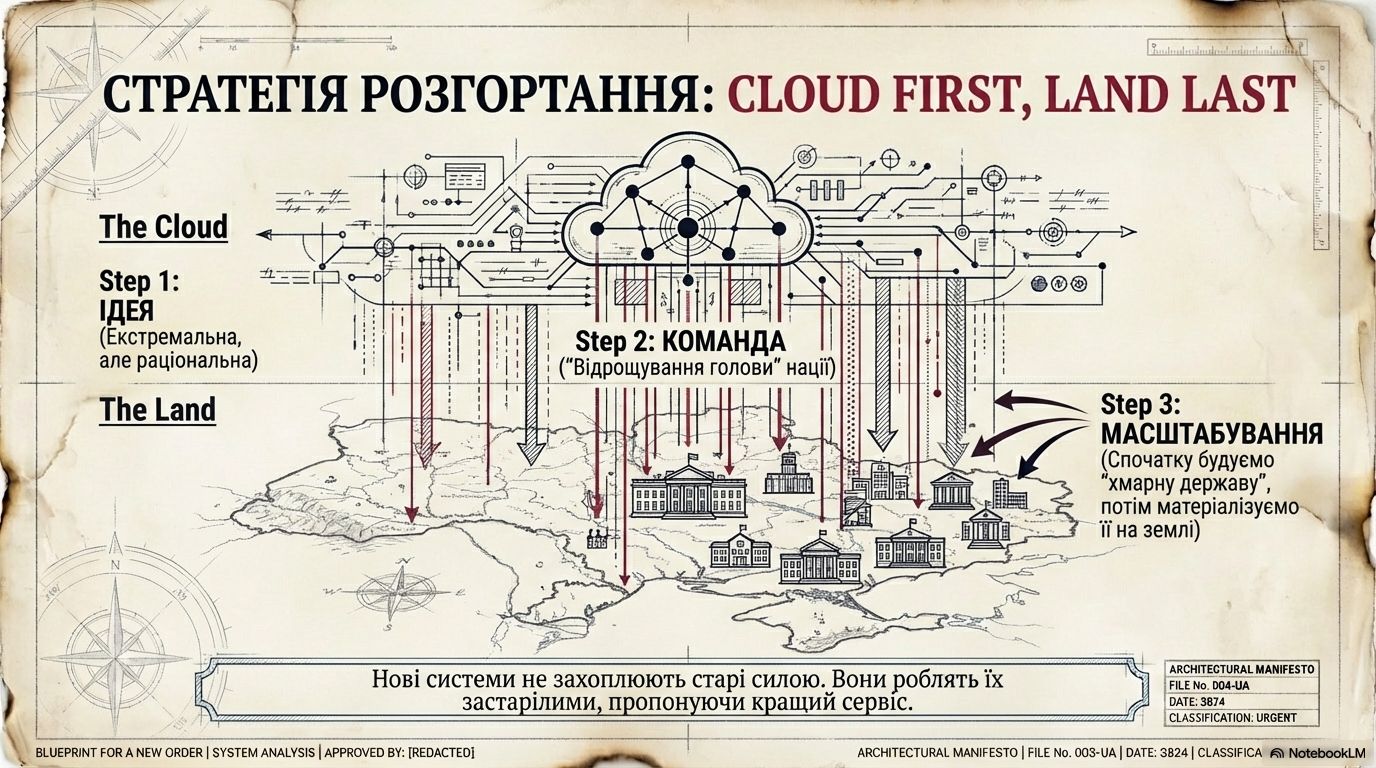 Перетвори групу однодумців на мережеву структуру. На етапі Cloud first територія не має значення – важливою є єдність цінностей та стратегічна синхронізація. Використовуй будь-які доступні платформи для комунікації, щоб сформувати спільне інтелектуальне поле.